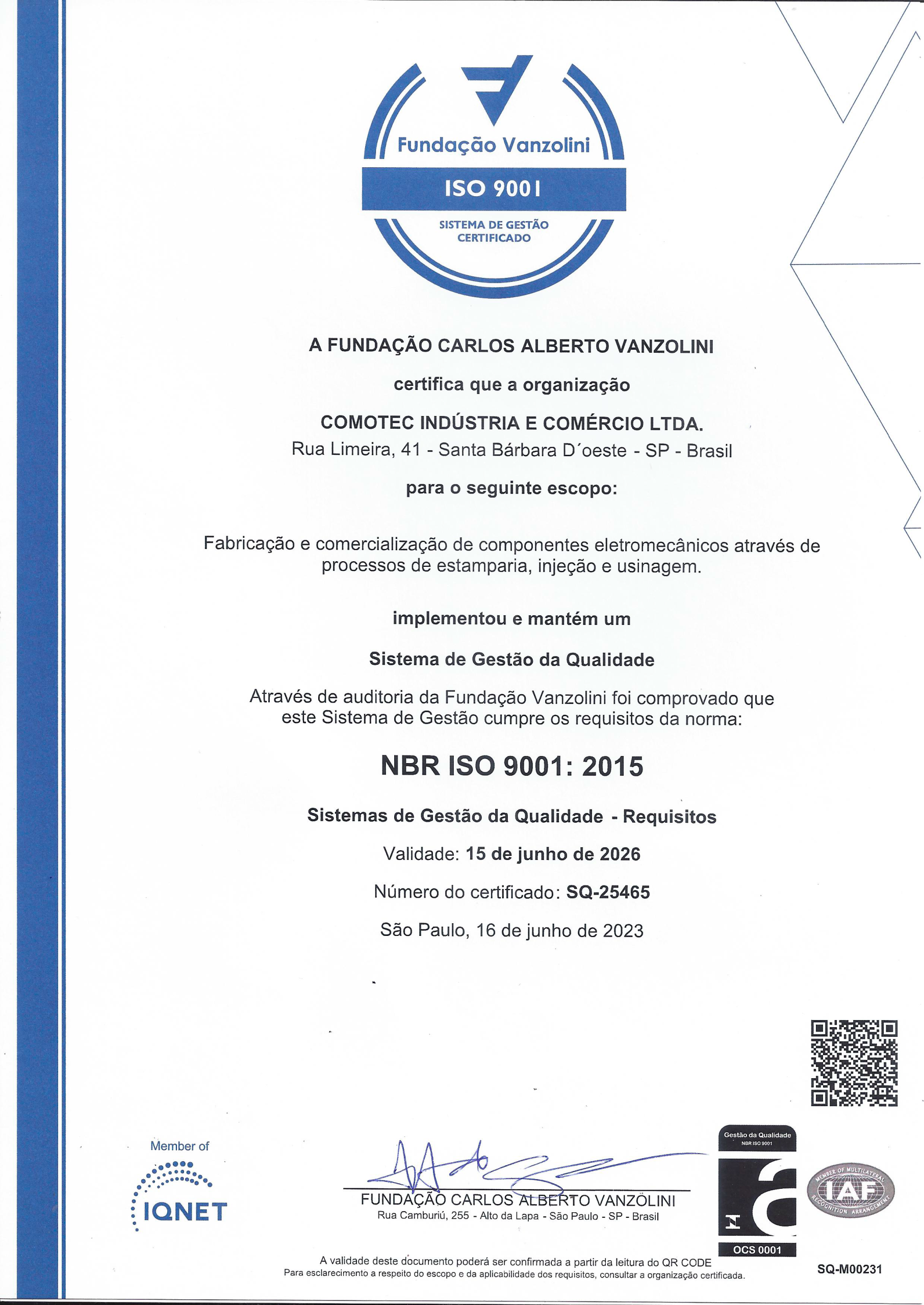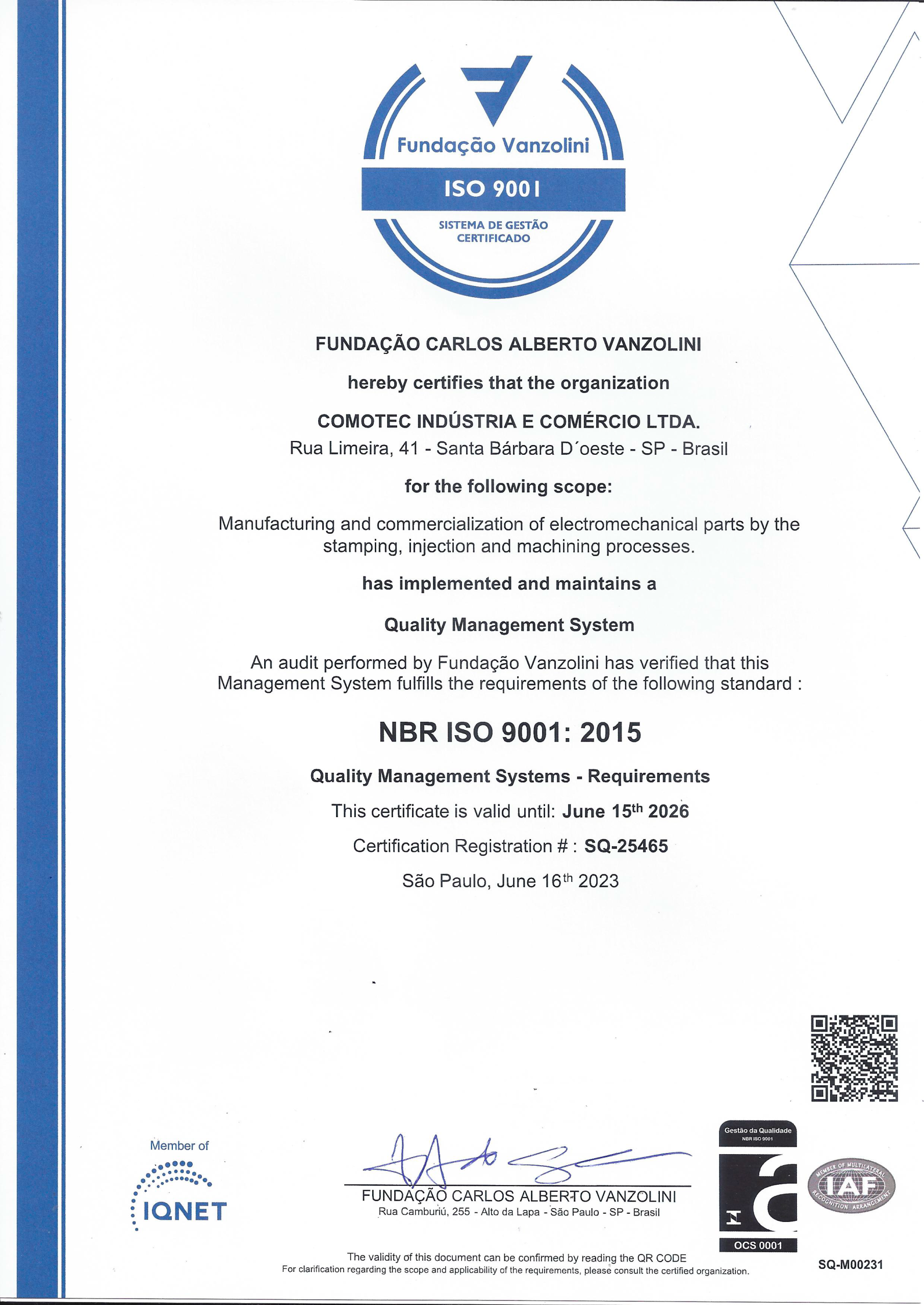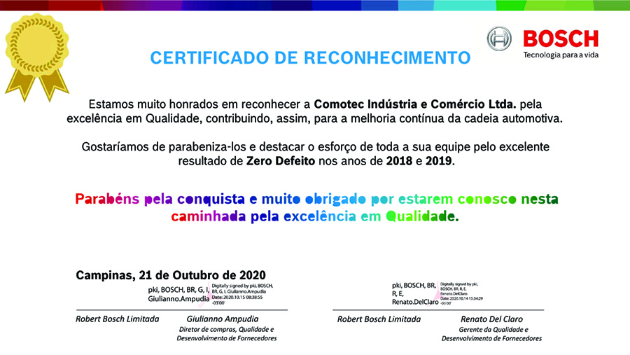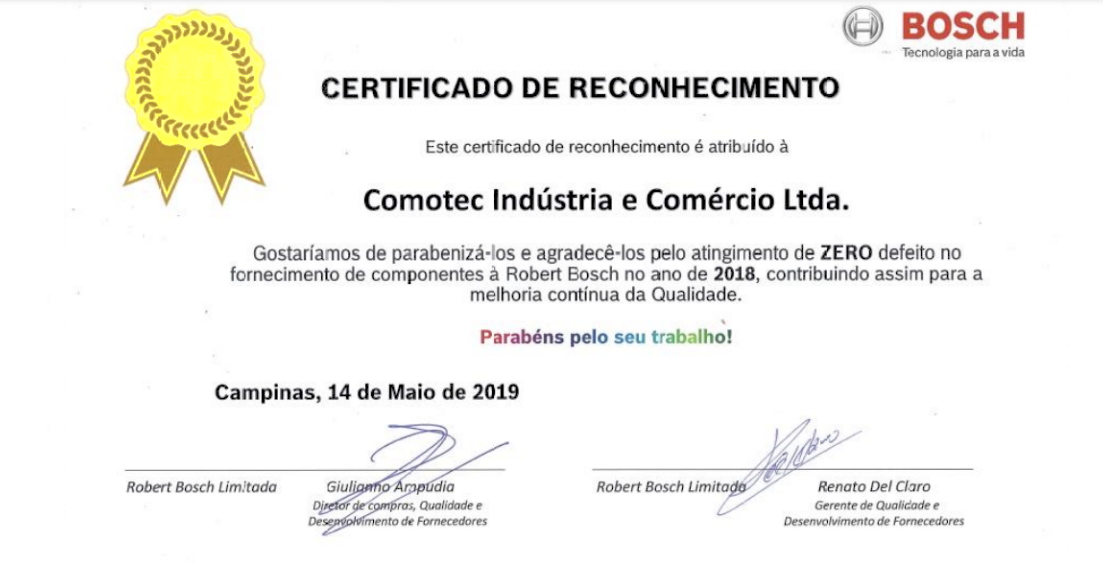 A Comotec possui certificações reconhecidas nacional e internacionalmente, como a ISO 9001:2015, que atestam nosso compromisso com a excelência, inovação e melhoria contínua em todos os processos.